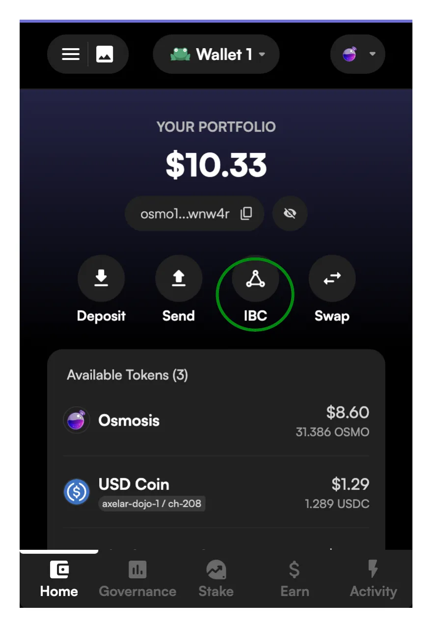 In the steps that follow we will swap Akash AKT for Axelar USDC. Other methods are possible but if you would like to follow these instructions explictly, ensure that you have some available AKT.