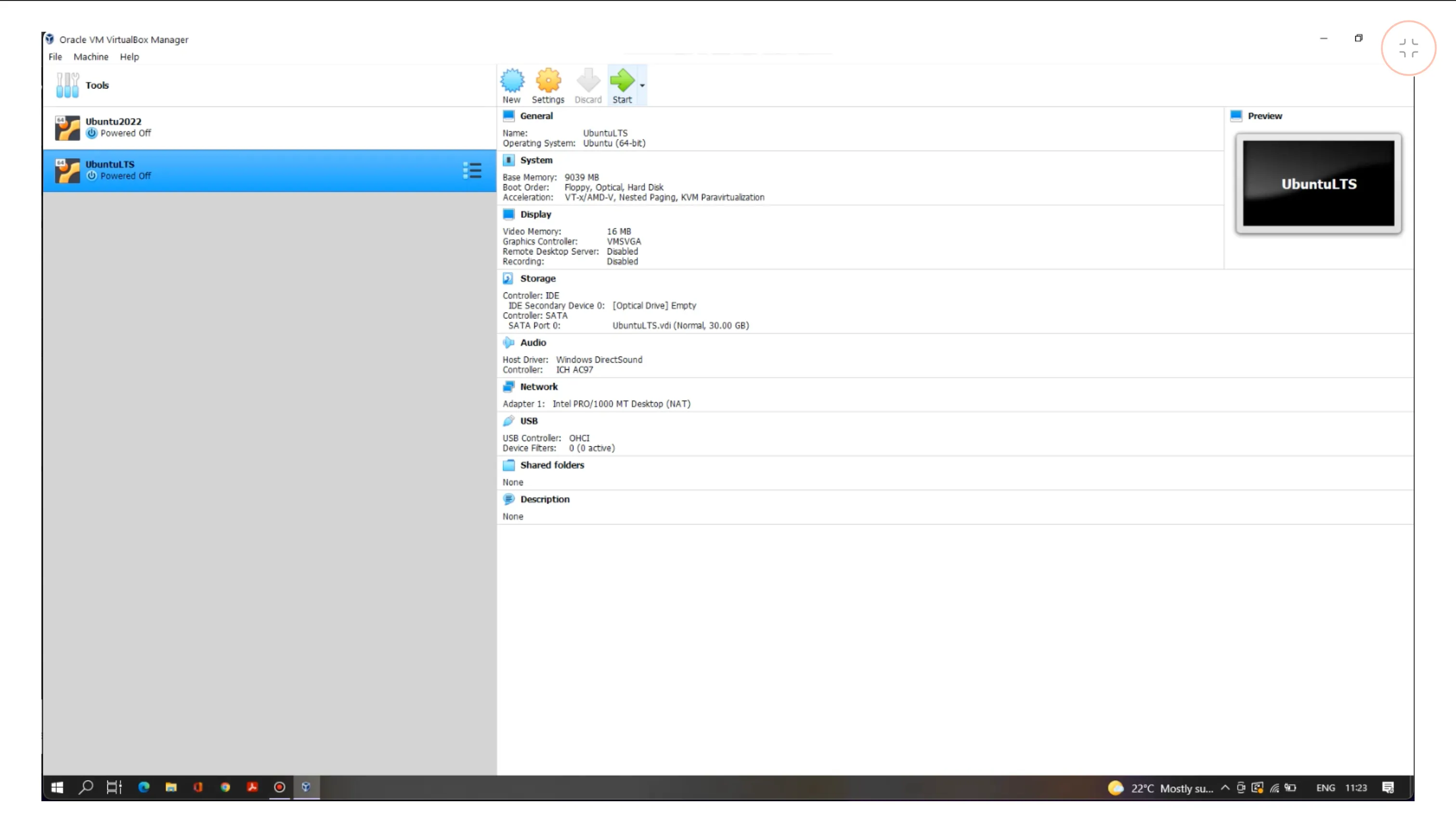 Select the newly created VM and click Settings.