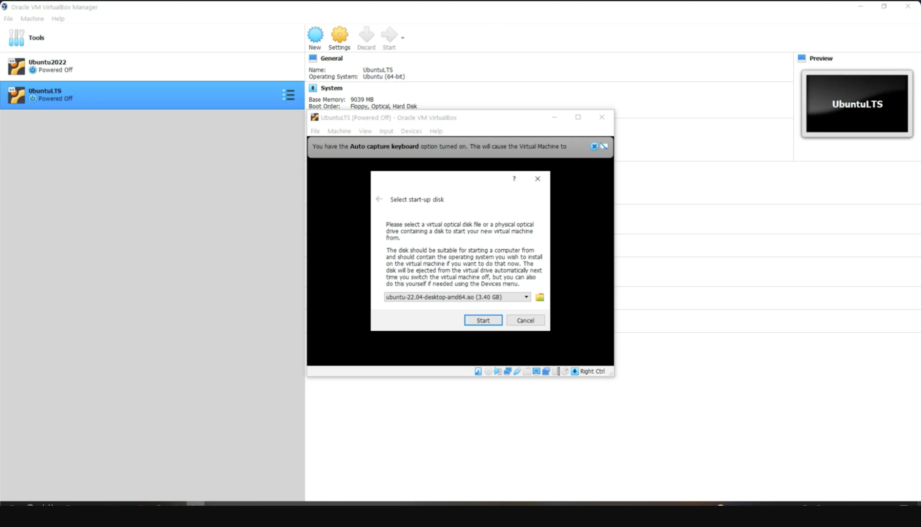 Click Start to launch your VM.