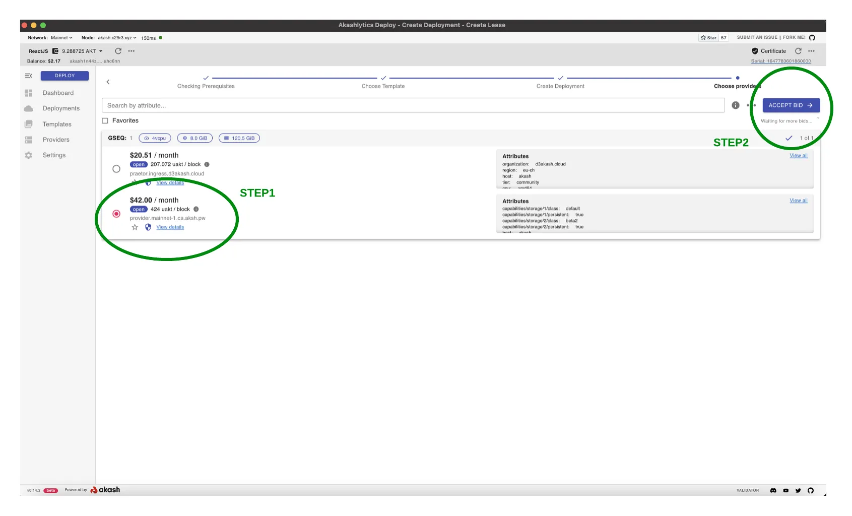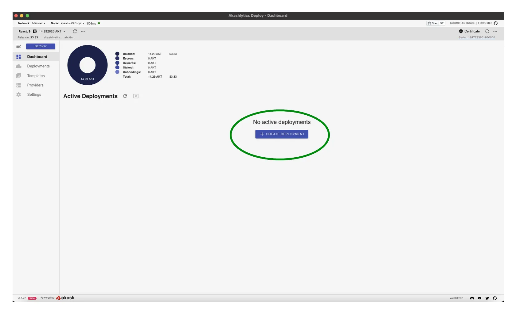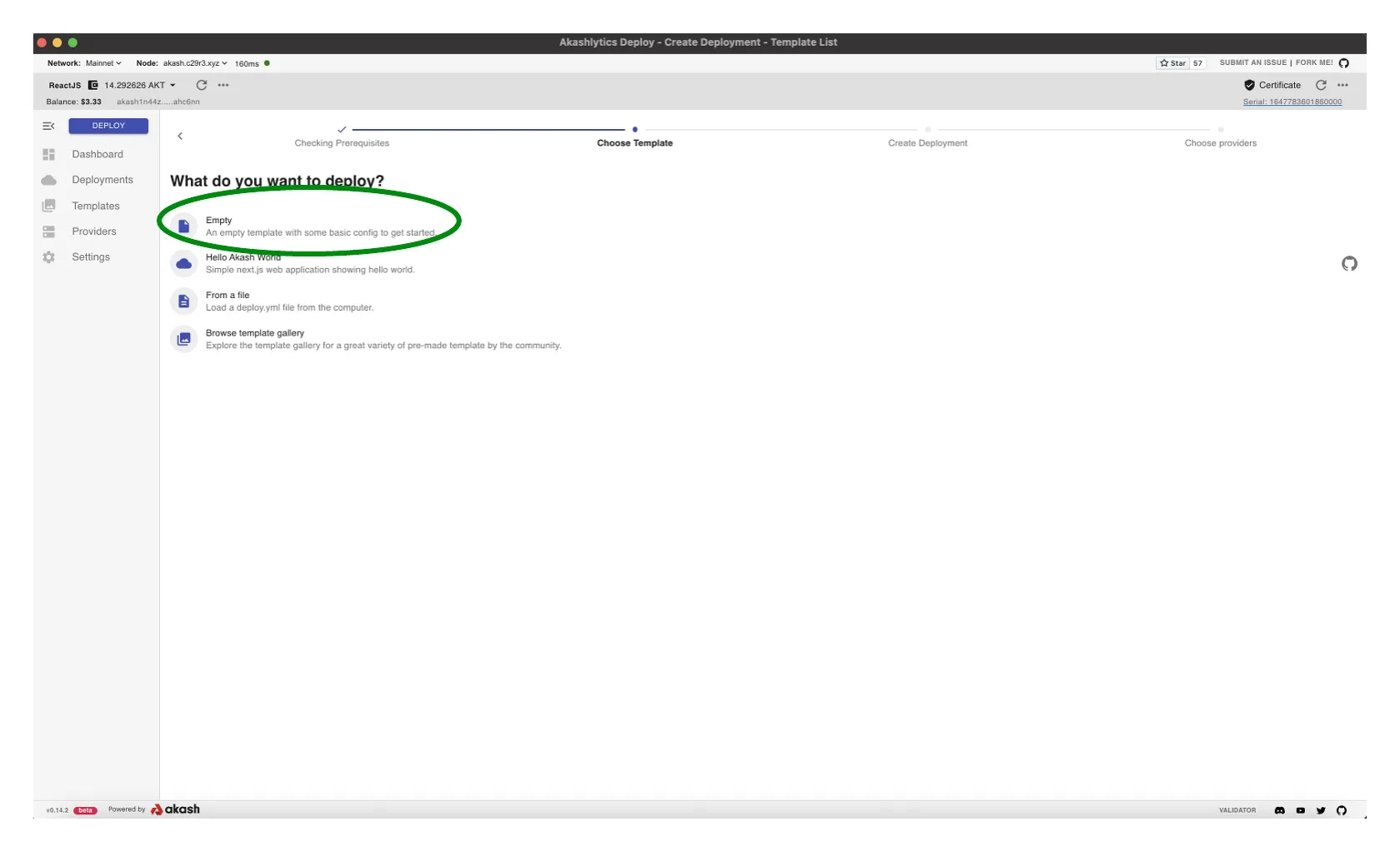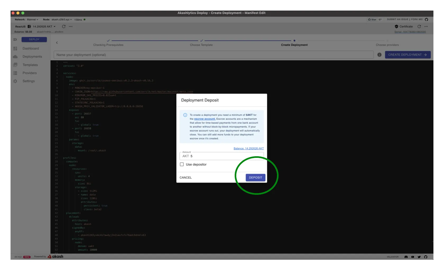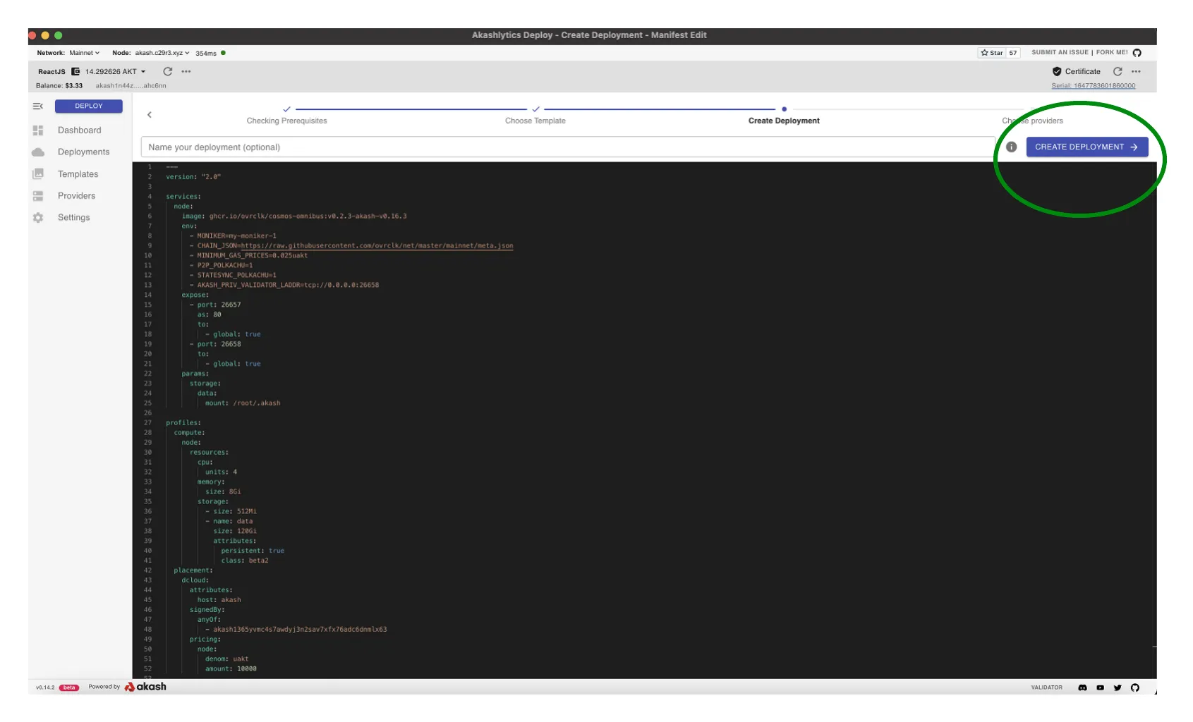 - Use the steps that follow - within Akash Console - to create your Akash Validator deployment
