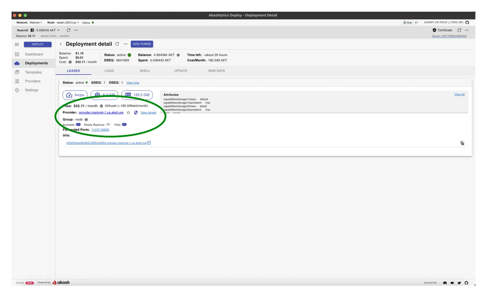 - In upcoming TMKMS configuration sections we will need to specify our Akash Validator deployment’s URI and port